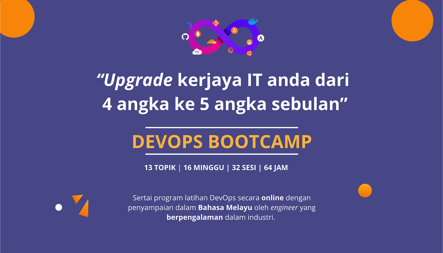 Jika anda ingin untuk tambah ilmu, kemahiran dan juga upgrade kerjaya kepada DevOps Engineer, jom sertai DevOps Bootcamp yang akan berlangsung mulai bulan September ini selama 4 bulan.