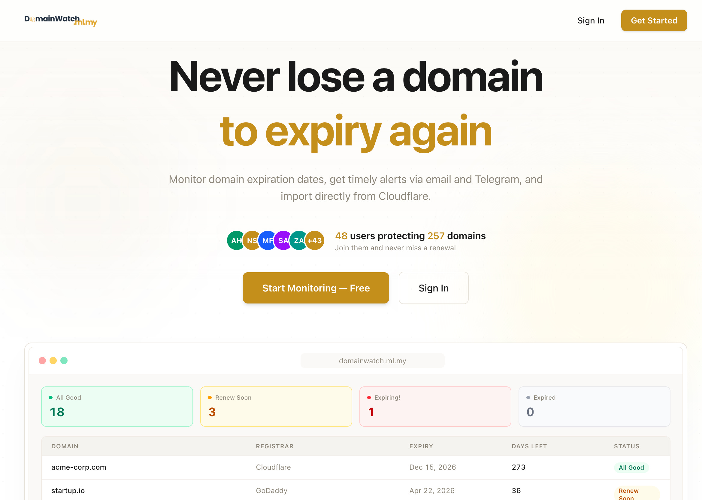 Dari pengalaman itulah DomainWatch dibangunkan untuk memastikan perkara ini tidak berlaku lagi.